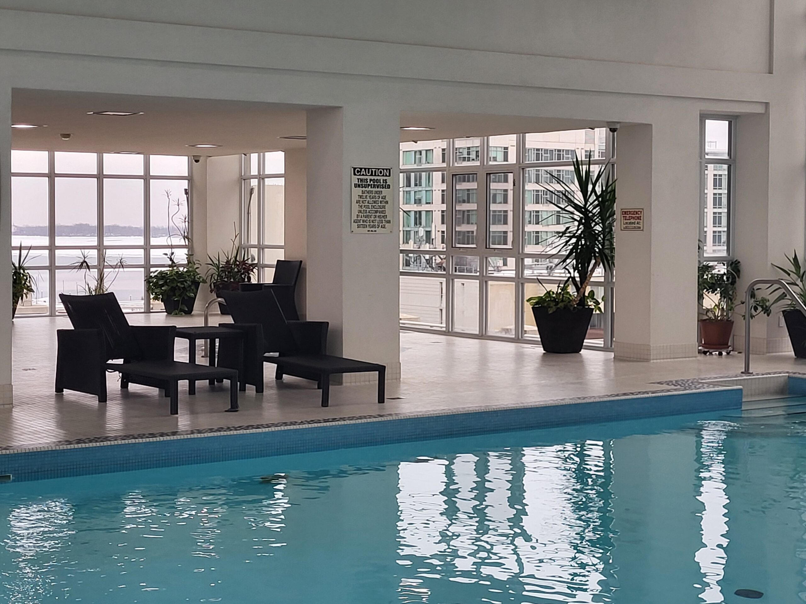 2 Bedrooms, a Den with a view, and a door! Two large bathrooms. Two balconies.  Amazing pool, courtyard, and other amenities.  One parking spot and one super-sized locker beside your parking spot. Life is good here!